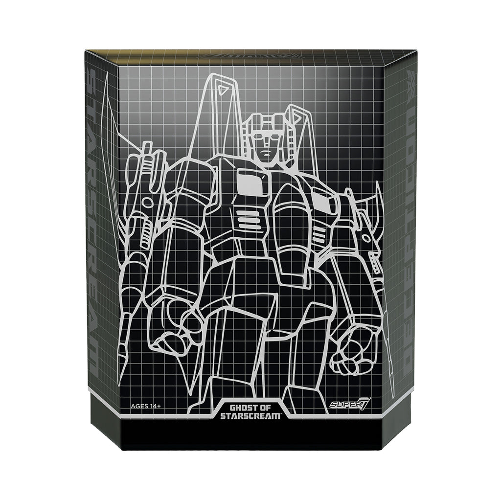 Based on the episode "Starscream's Ghost" from the original G1 cartoon, Starscream returns as a sparkling robo-ghost after being blasted into oblivion by Galvatron in The Transformers: The Movie. This figure features glitter injected directly into the translucent plastic to achieve this hauntingly beautiful, sparkly look. This 7" highly-articulated deluxe action figure is made-to-order and includes a variety of interchangeable parts, such as a G1 toy-accurate head. More than meets the eye!